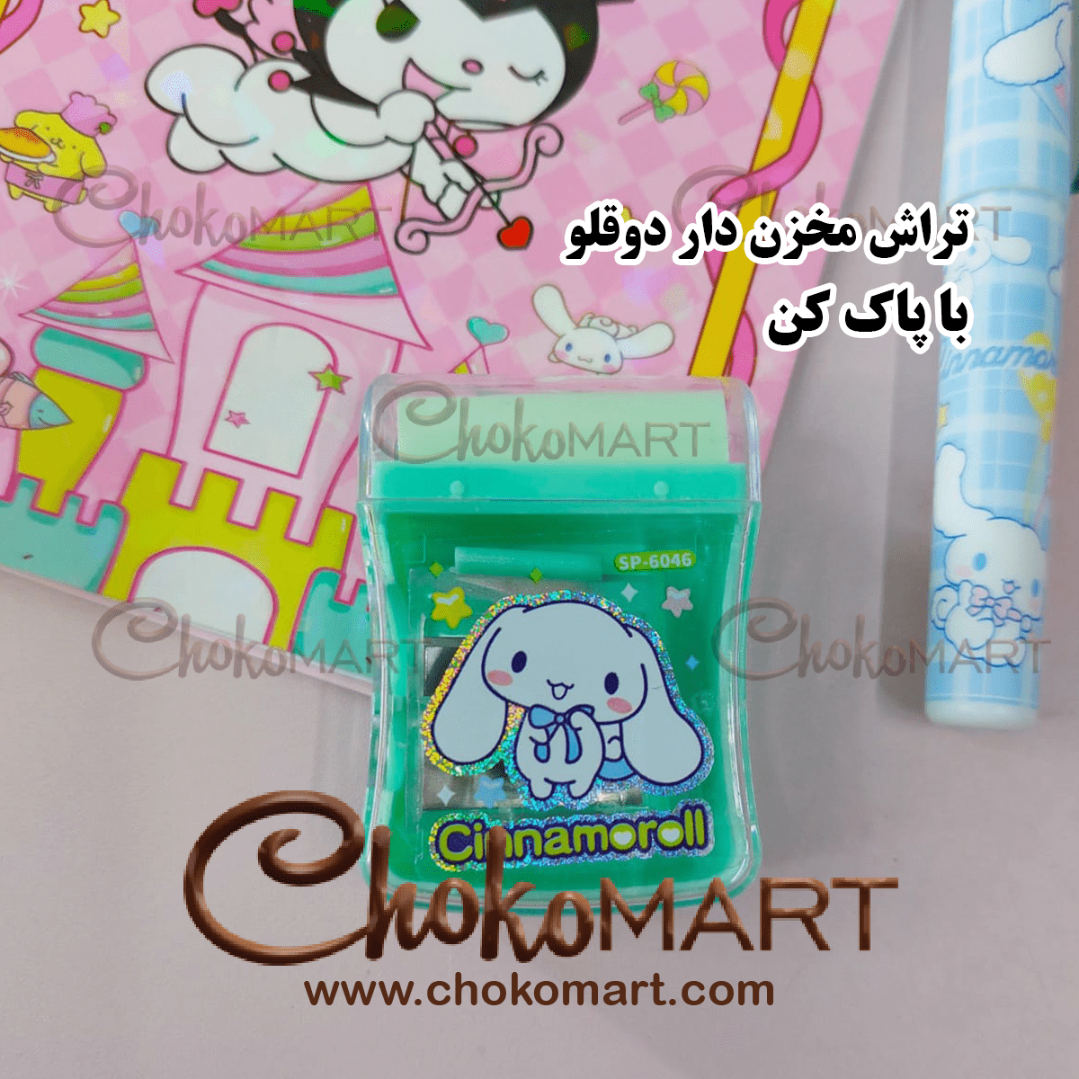 تراش مخزن دار دوقلو سینامورول با پاک کن